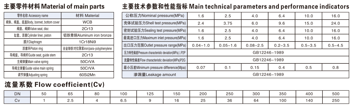 二、Y43H蒸汽減壓閥主要技術(shù)參數(shù)和性能指標(biāo)